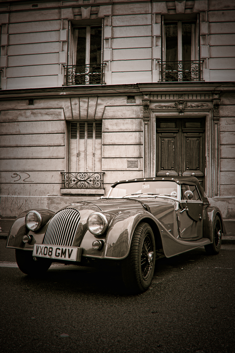 But I decided that I would go through some old archives and look around for some of my old shots to see if there was something I could work on and use. I found this photo of an old car in Paris suburb called Montrouge. If I am not mistaken this is a Morgan +4, a pretty photogenic car from the 60s.