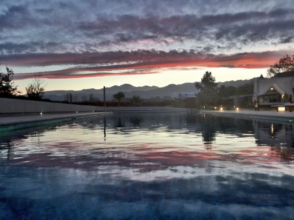 When I was in Argentina I went to visit a fantastic hotel called Entre Cielos, in Spanish that means between skies on the last day when I stayed at the hotel the sunset was spectacular. I wanted to get a picture of that sunset and it wasn’t working well. The iPhone camera is just not made for sunsets and stuff like that. But the hotel had a pool so I got down on all four and shot the sunset’s reflection in the pool to try and get more of it.