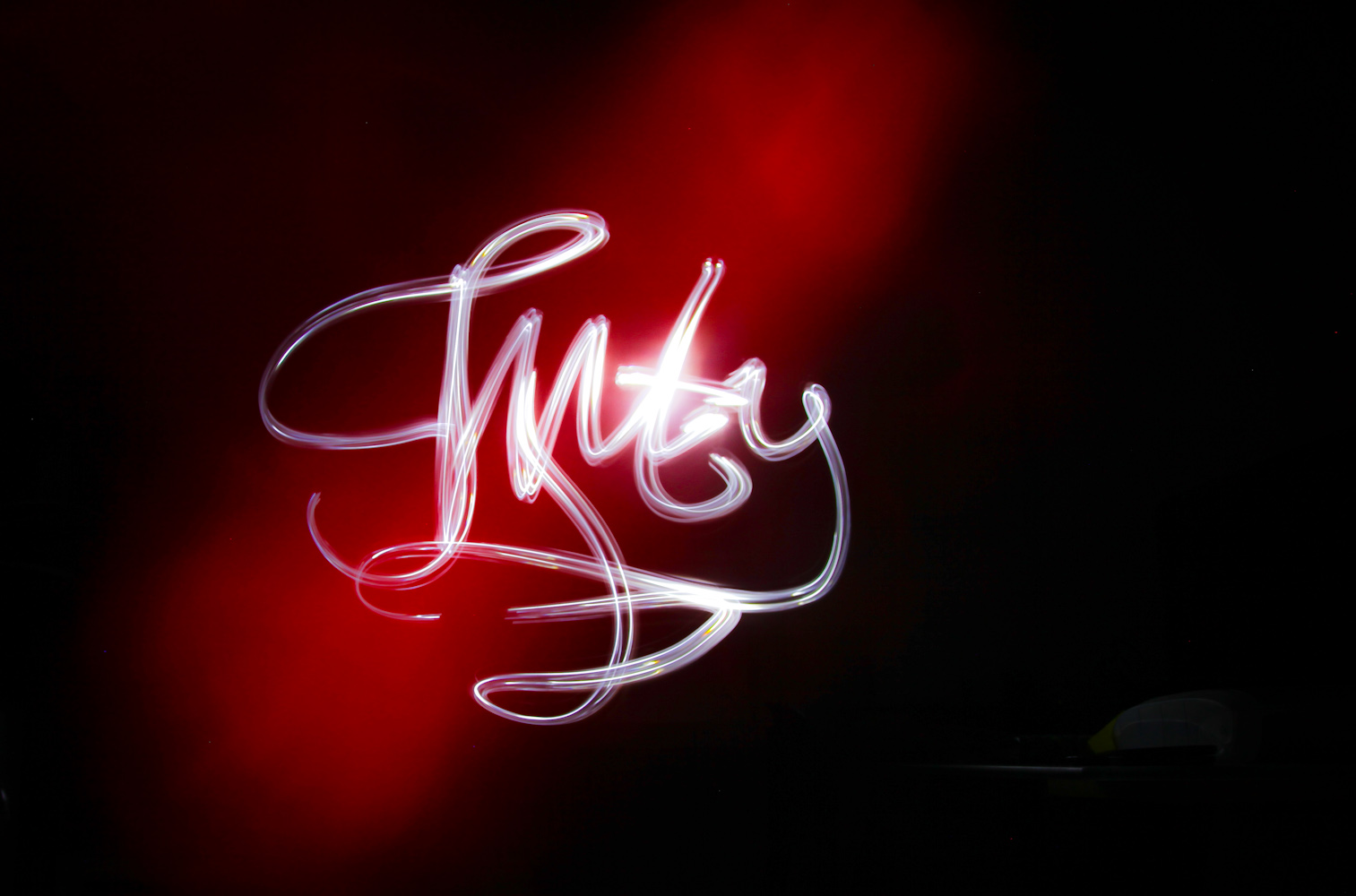 Light writing, The Signature in the dark with a bit of red blur added. A winter photo idea.