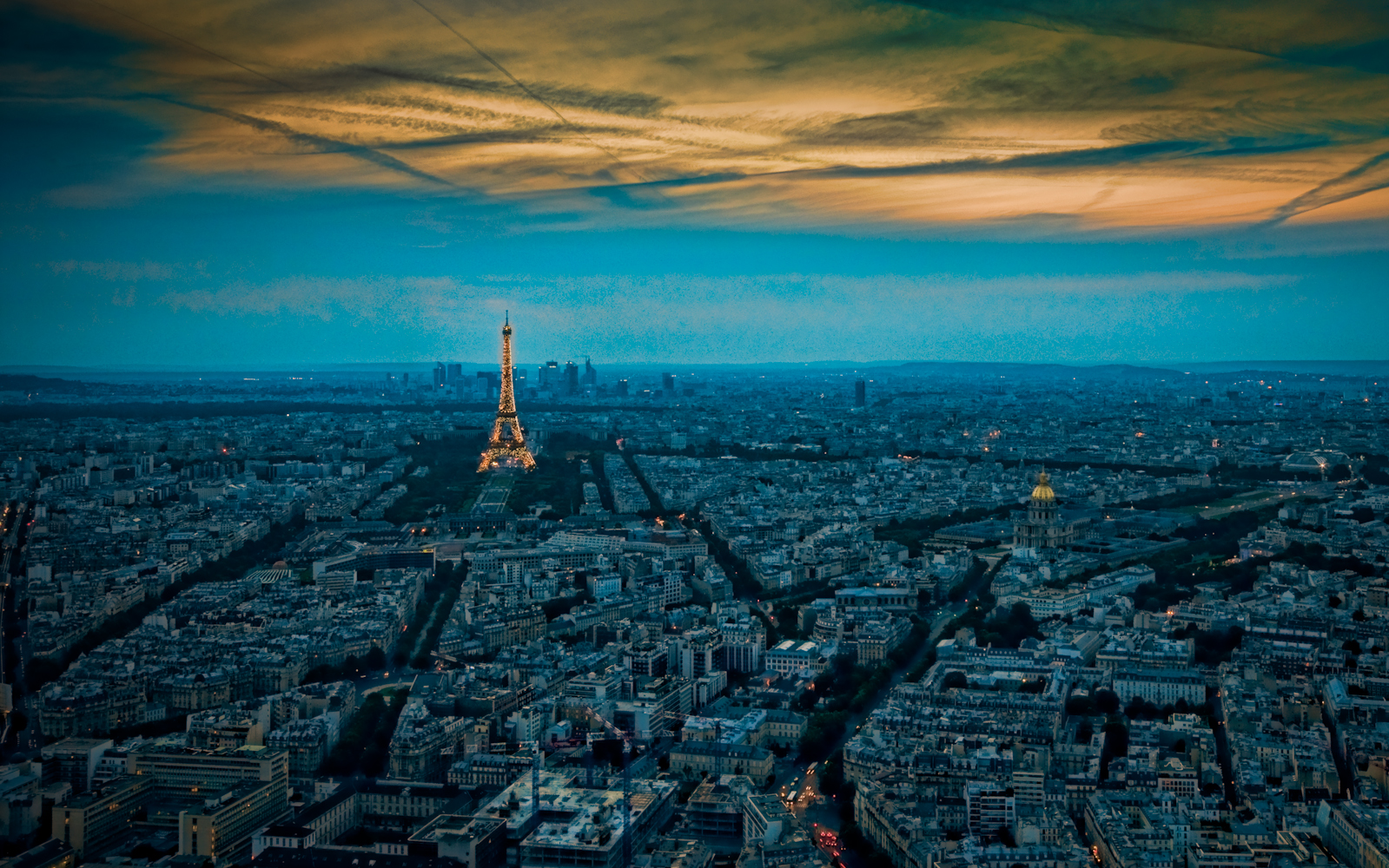 Taken from atop the Montparnasse tower (have I ever said that it’s the scar on Paris’ face) here is the Eiffel Tower at twilight just after the sun set behind the clouds and just before the city lights turned on.